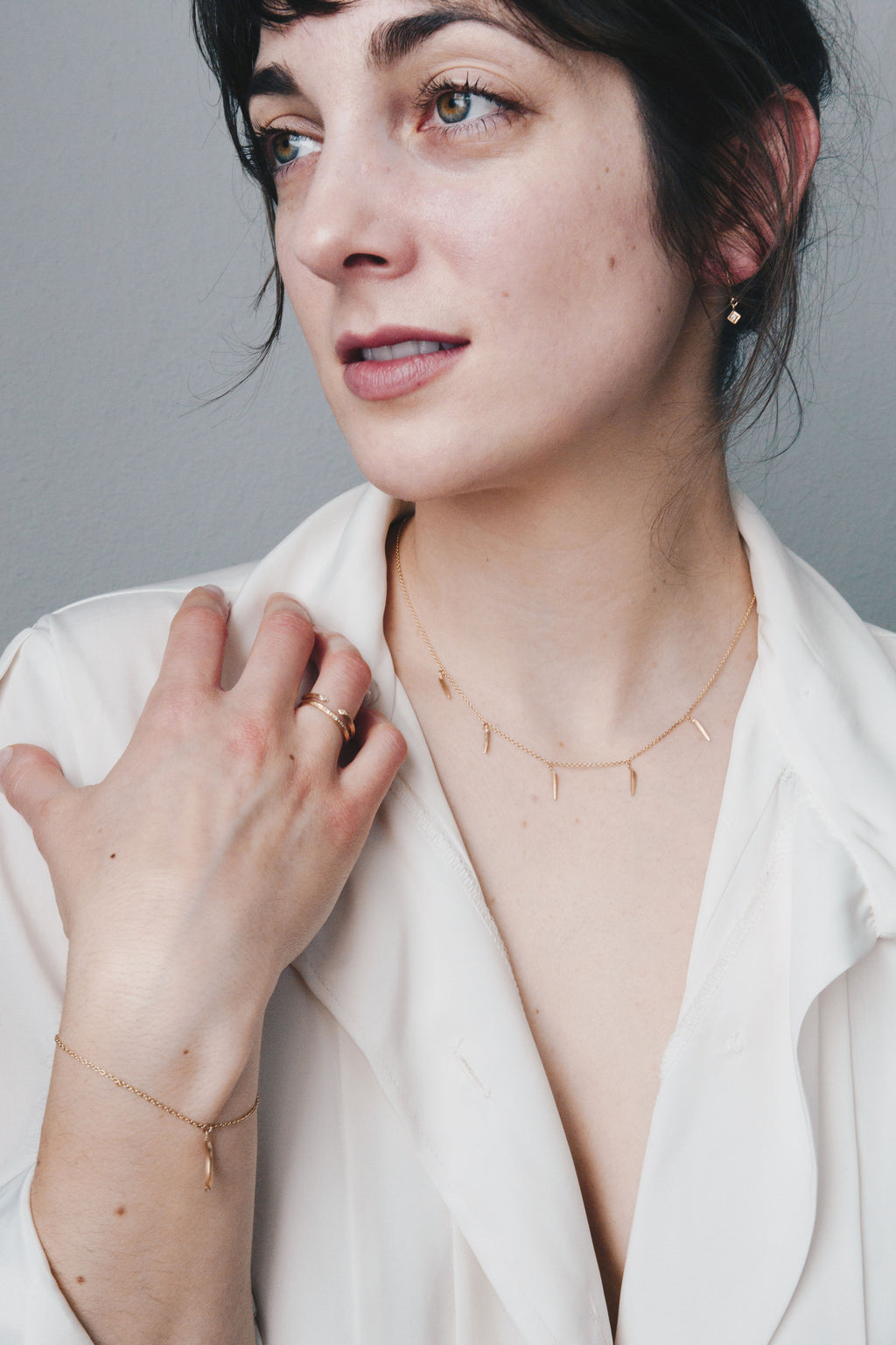 Since 2012 Rhiannon has developed her jewellery to celebrate pared back luxury for the modern woman, designing and making minimal and understated fine jewellery staples. Each design is inspired by Rhiannon's own preference for subtle and elegant jewellery which transitions seamlessly from day to evening wear.
